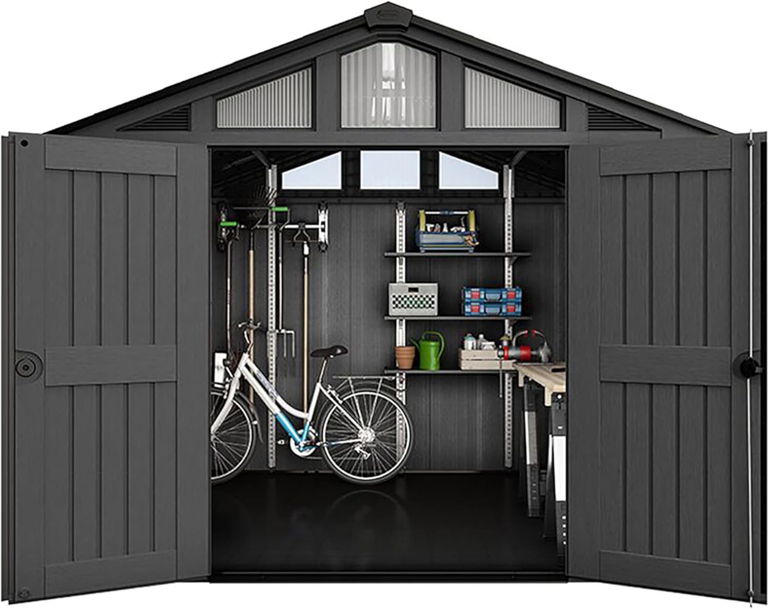 Houd uw tuingereedschap, apparatuur en andere buitenbenodigdheden veilig en georganiseerd met het Keter Stronghold 10x8 tuinhuis. Ontworpen voor duurzaamheid en gebruiksgemak, combineert dit tuinhuis stijl en functionaliteit voor uw buitenruimte.