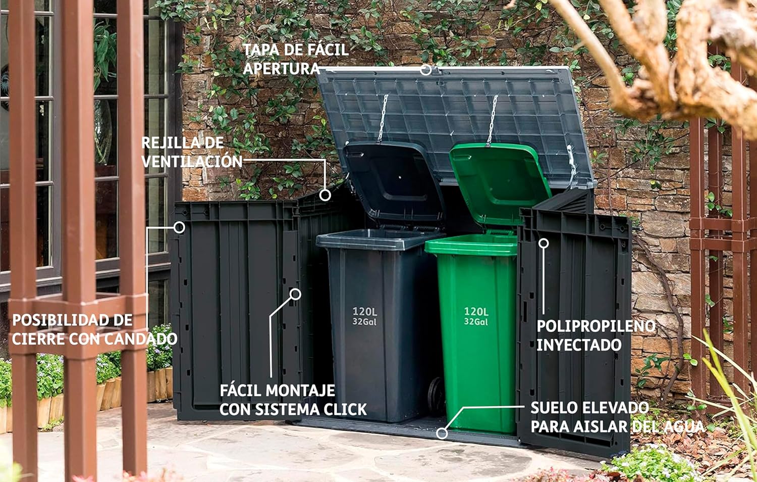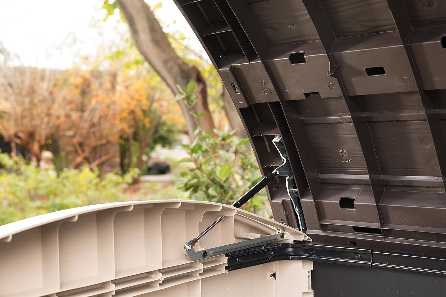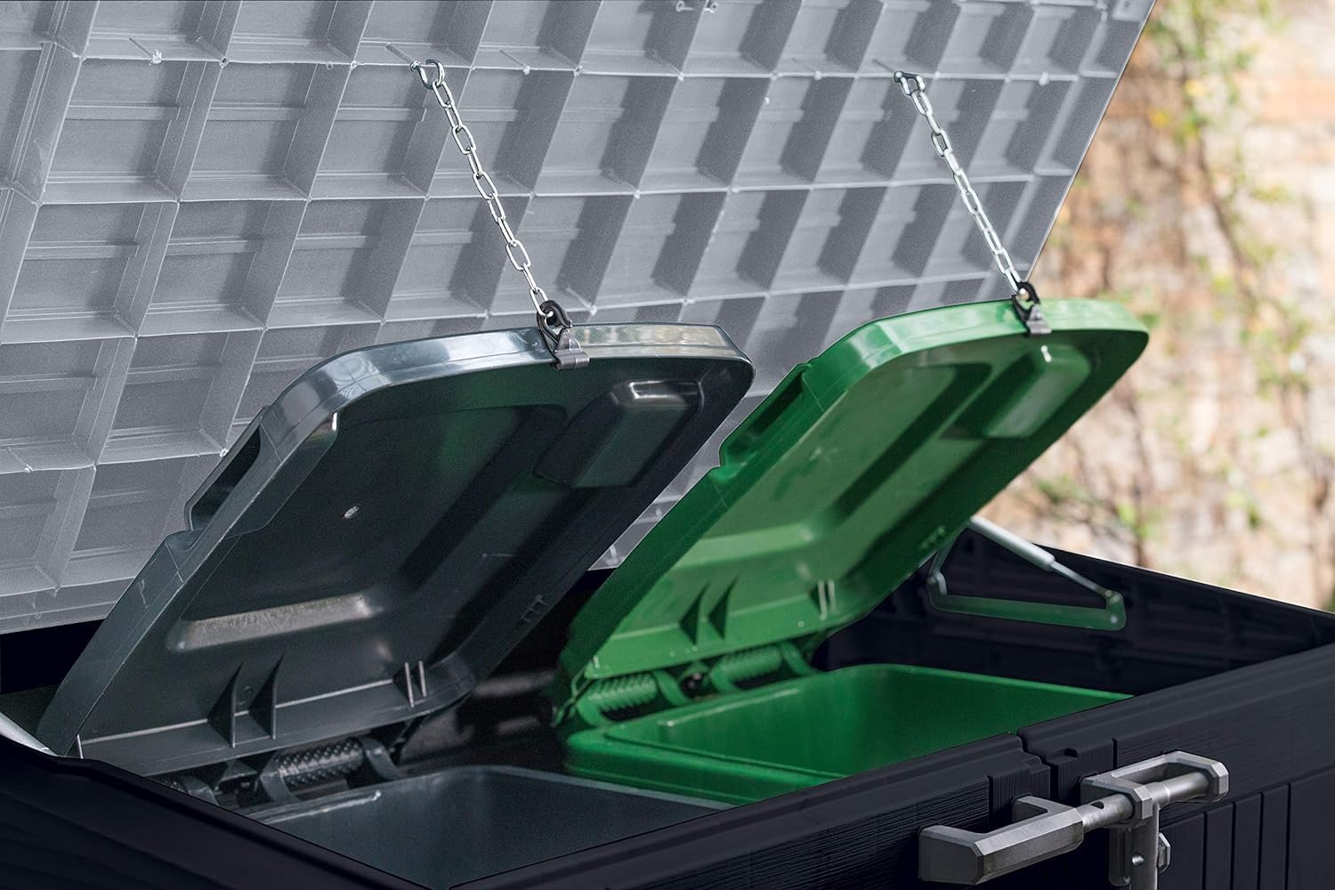 Deze opbergbox biedt enorme opslagruimte, bescherming tegen alle weersomstandigheden en een mooie natuurlijke uitstraling — zonder onderhoud. De perfecte oplossing om uw buitenruimte netjes, georganiseerd en overzichtelijk te houden.